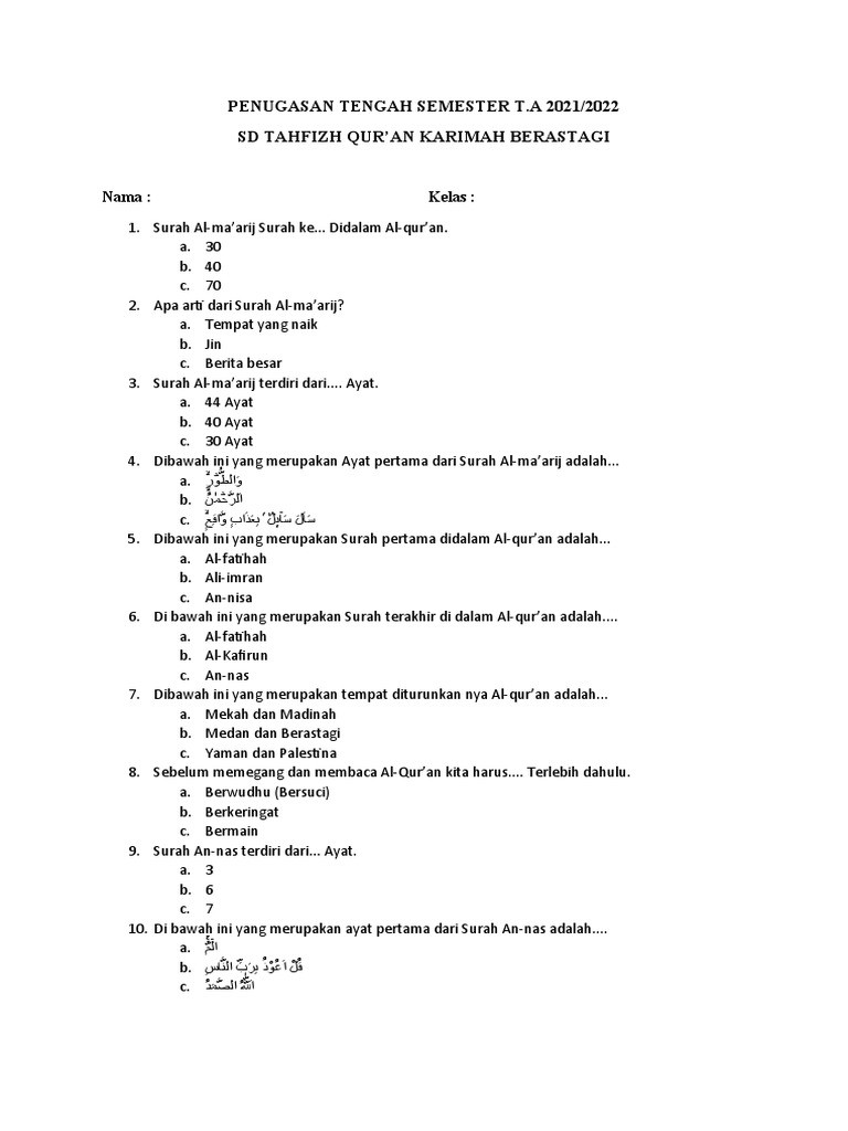 Semester 2 kelas 4 merupakan periode penting untuk menguatkan hafalan yang telah dicapai dan mempersiapkan diri untuk tingkat hafalan yang lebih tinggi. Ujian tahfidz di akhir semester menjadi momen evaluasi yang krusial untuk mengukur kemajuan siswa, mengidentifikasi area yang perlu diperbaiki, dan memberikan motivasi untuk terus bersemangat. Artikel ini akan membahas secara mendalam berbagai jenis contoh soal tahfidz untuk kelas 4 semester 2, lengkap dengan tips persiapan efektif bagi siswa, orang tua, dan guru.
